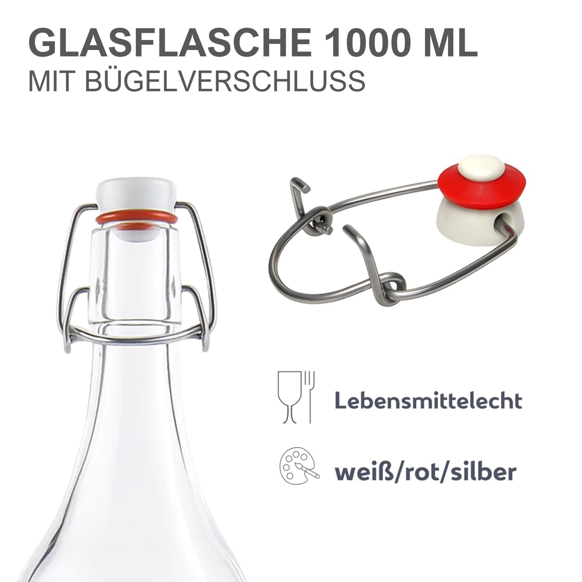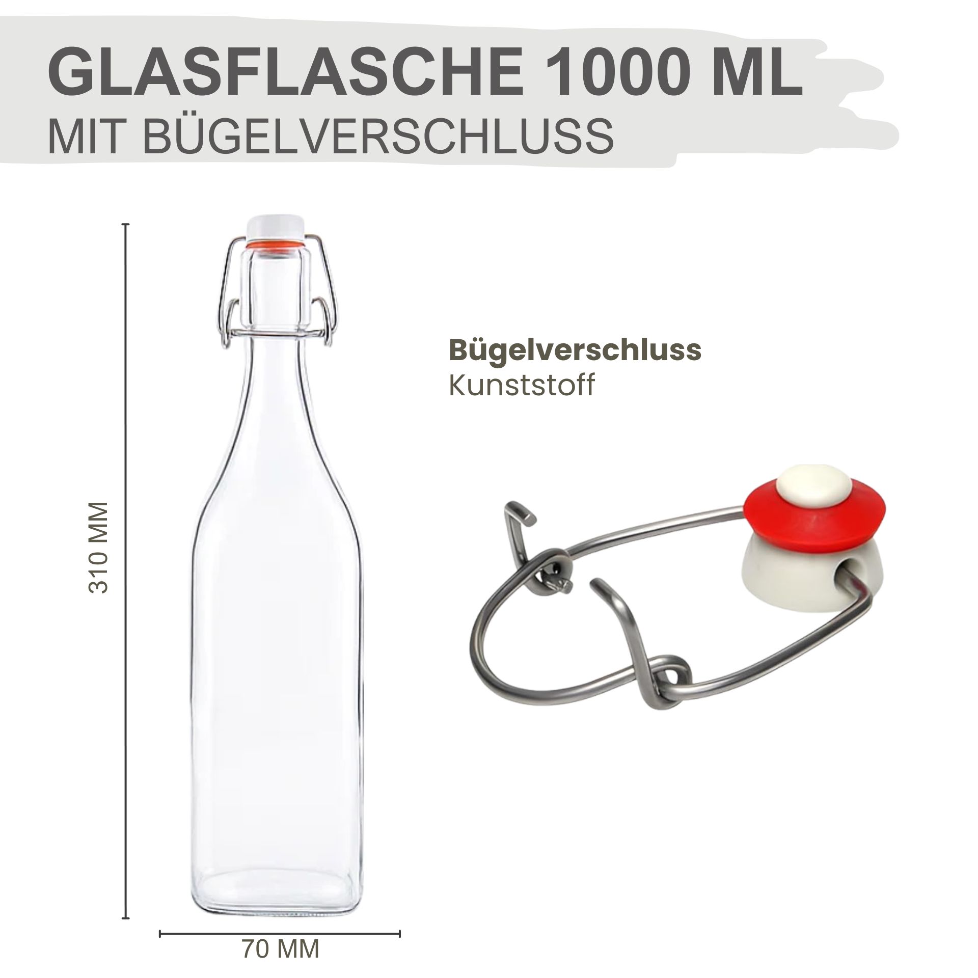 Glasflasche 1000 ml eckig mit Bügelverschluss Kunststoff