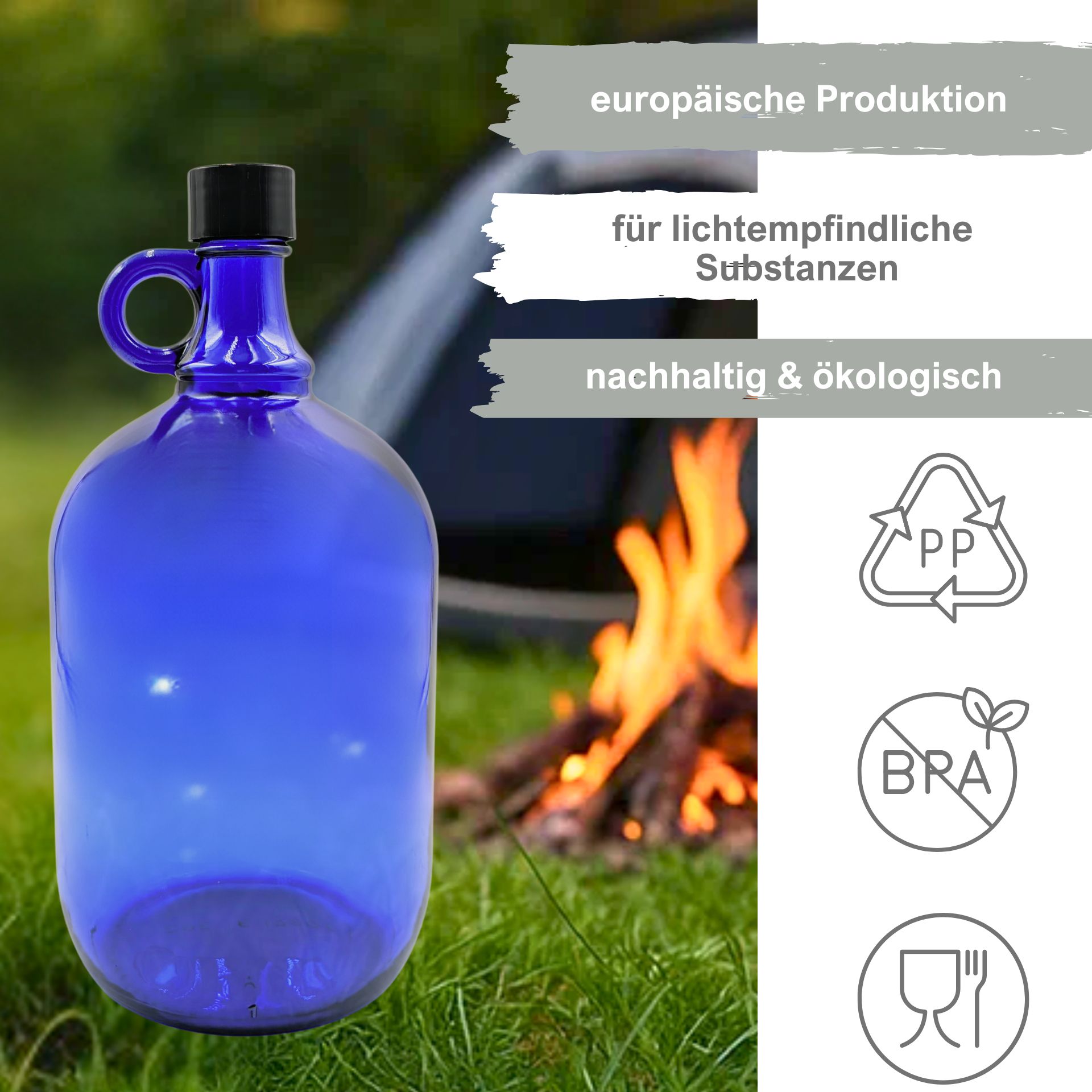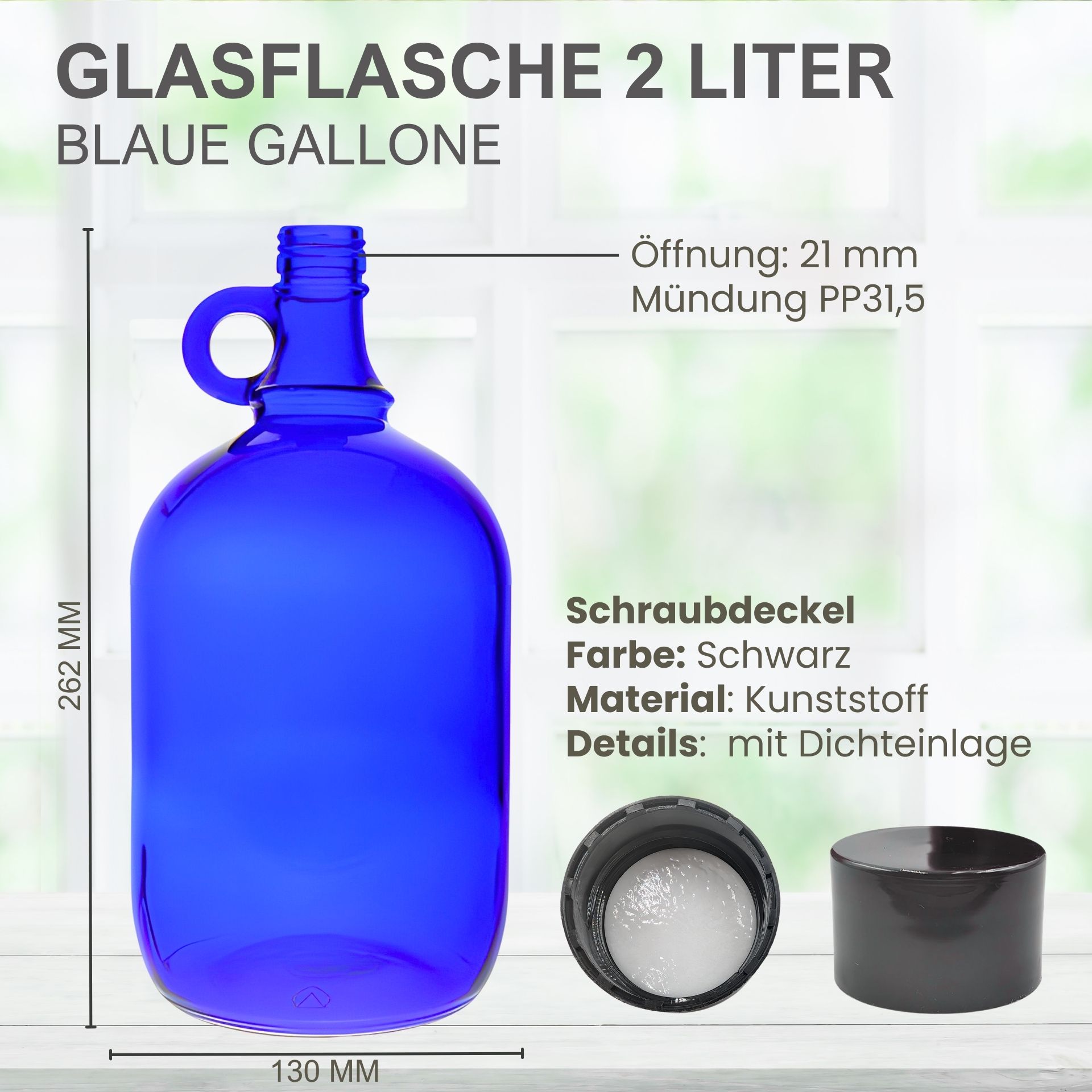 Glasflasche 2000 ml Henkelflasche blau
