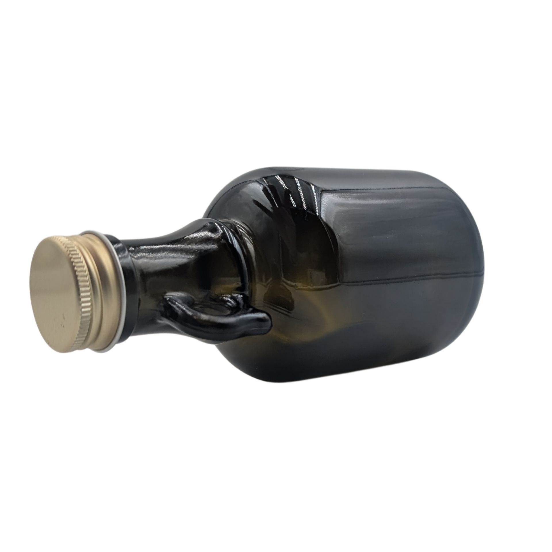 Die mikken Henkelflasche 250 ml mit Schraubdeckel ist perfekt zum Abfüllen von aromatischen Ölen, Likören, Schnäpsen, Sirup oder flüssigem Honig. Die charmante Form mit seitlichem Henkel erinnert an klassische Ahornsirup-Flaschen und macht sie ideal für selbstgemachte Köstlichkeiten und stilvolle Geschenke.