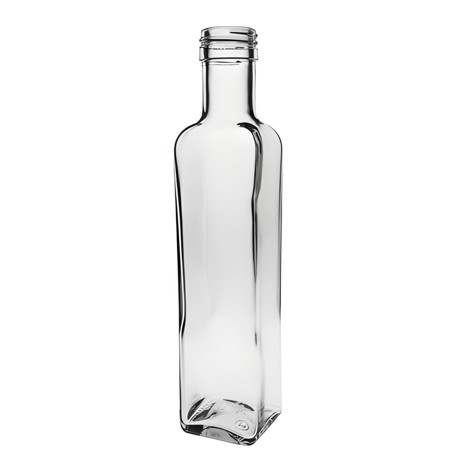 mikken Glasflasche 500 ml mit Schraubdeckel Öl- und Likörflasche Maraska in Klarglas.Öle, Liköre, Schnaps, Sirup, Säfte und andere selbstgemachte Kreationen finden in dieser klassischen Flasche ihre ansprechende Verpackung. Gefüllt mit selbstgemachten Köstlichkeiten sind die eckigen Flaschen als Geschenk oder Mitbringsel sehr beliebt und werden ebenso gern als Dekoflaschen oder Tischvasen mit einzelnen Blumen eingesetzt. Durch die eckige Form lassen sich die Etiketten schön großflächig gestalten.Material: Korpus aus Glas, Schraubverschluss aus AluminiumPflegehinweis: Der Korpus der Glasflaschen ist spülmaschinengeeignet, der Schraubverschluss ist jedoch per Handwäsche zu reinigen und ist nicht spülmaschinengeeignet. Die Maße der Flasche betragen ca.: Höhe Tiefe Breite Mündung Öffnung Ø Füllmenge* 26,6 cm 5,8 cm 5,8 cm PP 31,5 2,1 cm 500 ml / 0,5 Liter / 50 cl * Info: Die Füllmenge wird bis zur Oberkante des Flaschenrandes gemessen