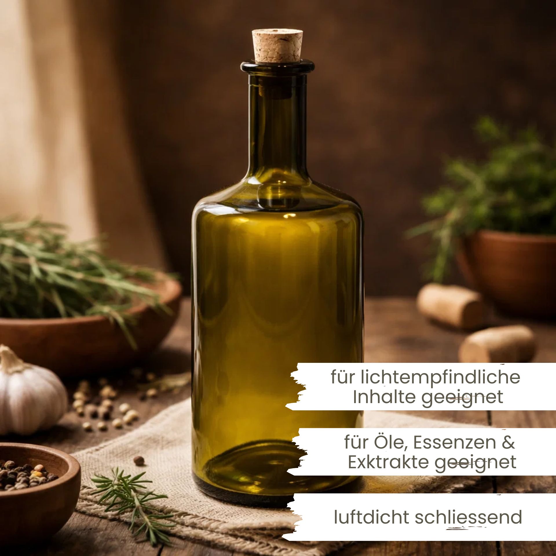 Glasflasche 500 ml grün Ölflasche mit Korken