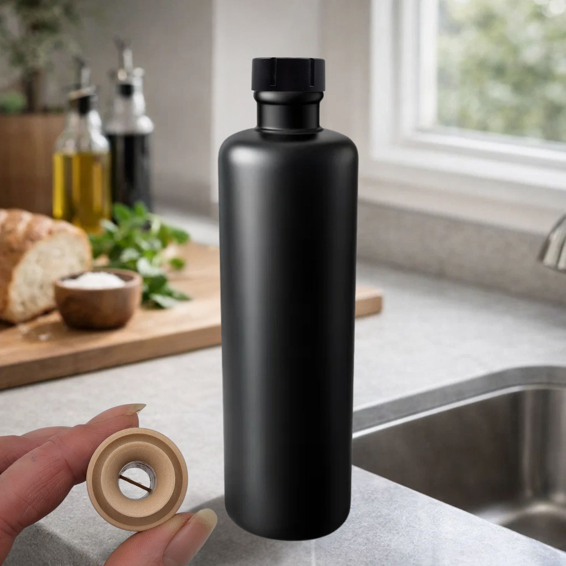 Die zusätzliche Kunststoffkappe verschließt die Flasche luftdicht und schützt Aromen sowie Frische zuverlässig. Gleichzeitig sorgt sie für eine saubere Aufbewahrung und eine ansprechende Optik.