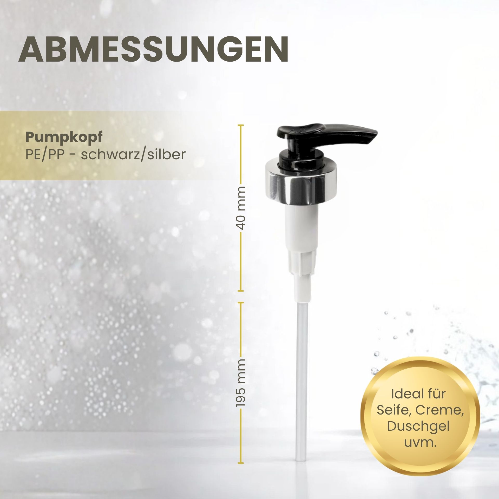 Seifenpumpe Pumpaufsatz schwarz/silber für Flaschen mit Gewinde GPI28