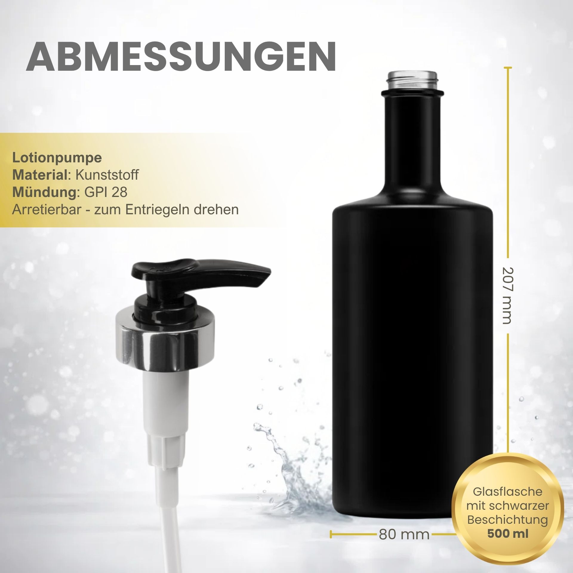 mikken ART schwarze Glasflasche 500 ml mit Dosierpumpe – modern & funktional