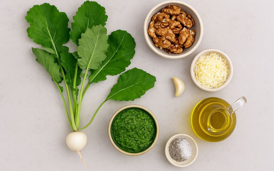 Pesto aus Mairübenblättern: Das nachhaltige Frühlingsrezept mit Walnüssen und Grana Padano