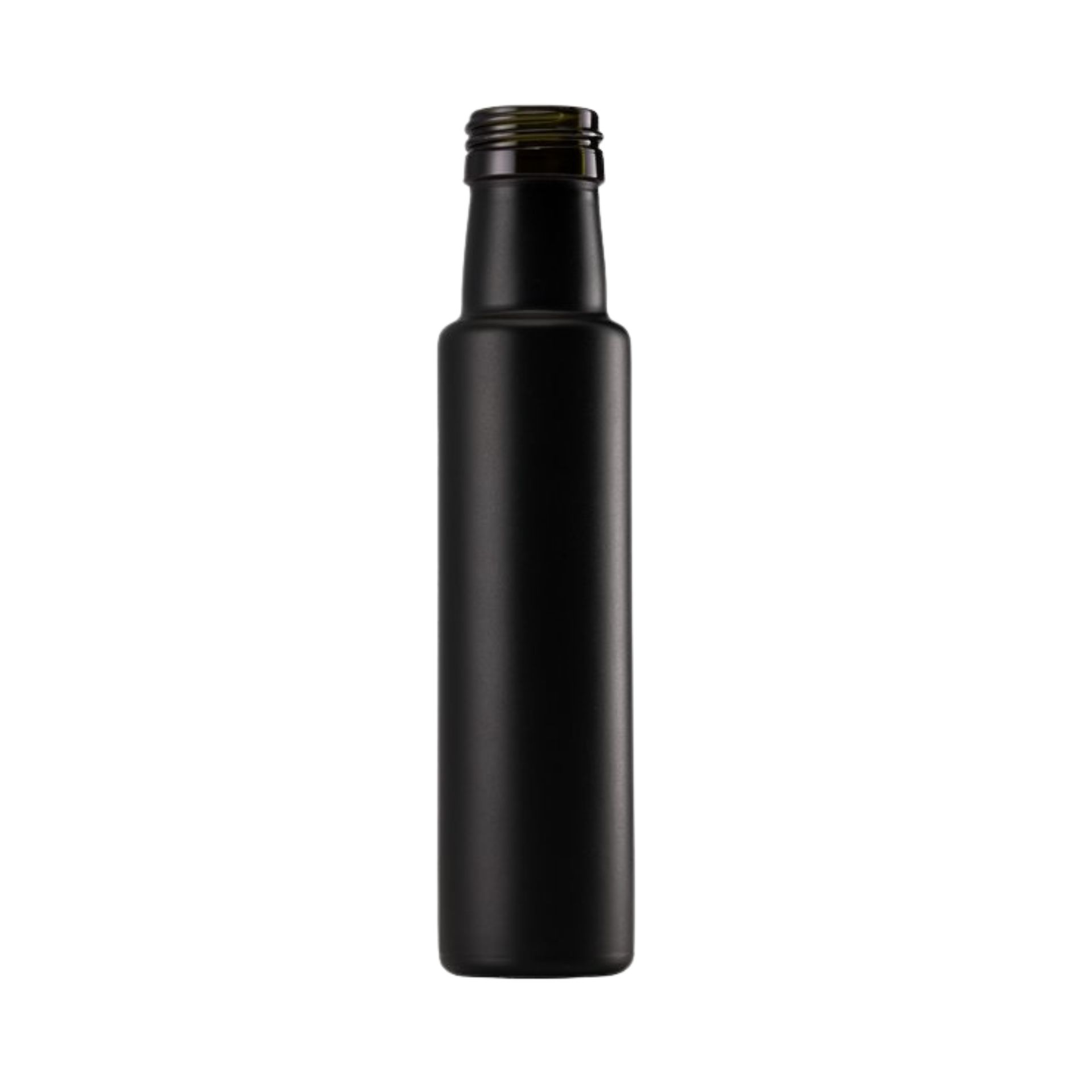 Die mikken Ölflasche Glasflasche matt schwarz, 100 ml ist die ideale kompakte Lösung für die Aufbewahrung hochwertiger Flüssigkeiten wie Olivenöl oder Essig – perfekt für die Küche oder den Esstisch.